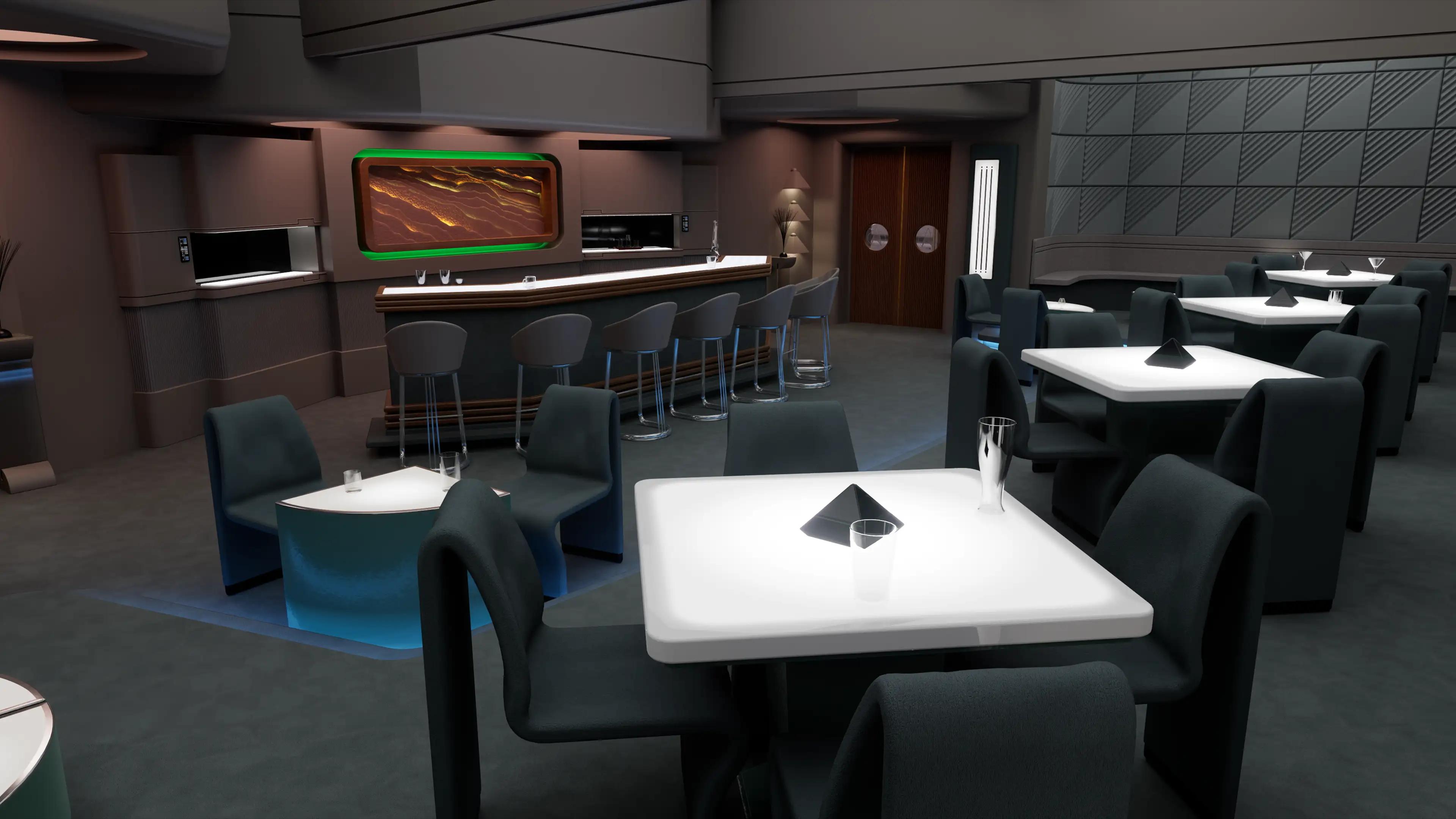 Ten Forward served as the Enterprise-D’s primary social and recreational hub, offering a welcoming and relaxed atmosphere for the crew. The room was situated on deck 10, at the very front of the ship, providing a stunning panoramic view of space through its large windows. These windows were one of its most distinctive features, allowing visitors to enjoy the mesmerizing sights of distant stars and galaxies. The space was designed to promote a sense of community and relaxation in the midst of the crew's demanding mission to explore the galaxy.