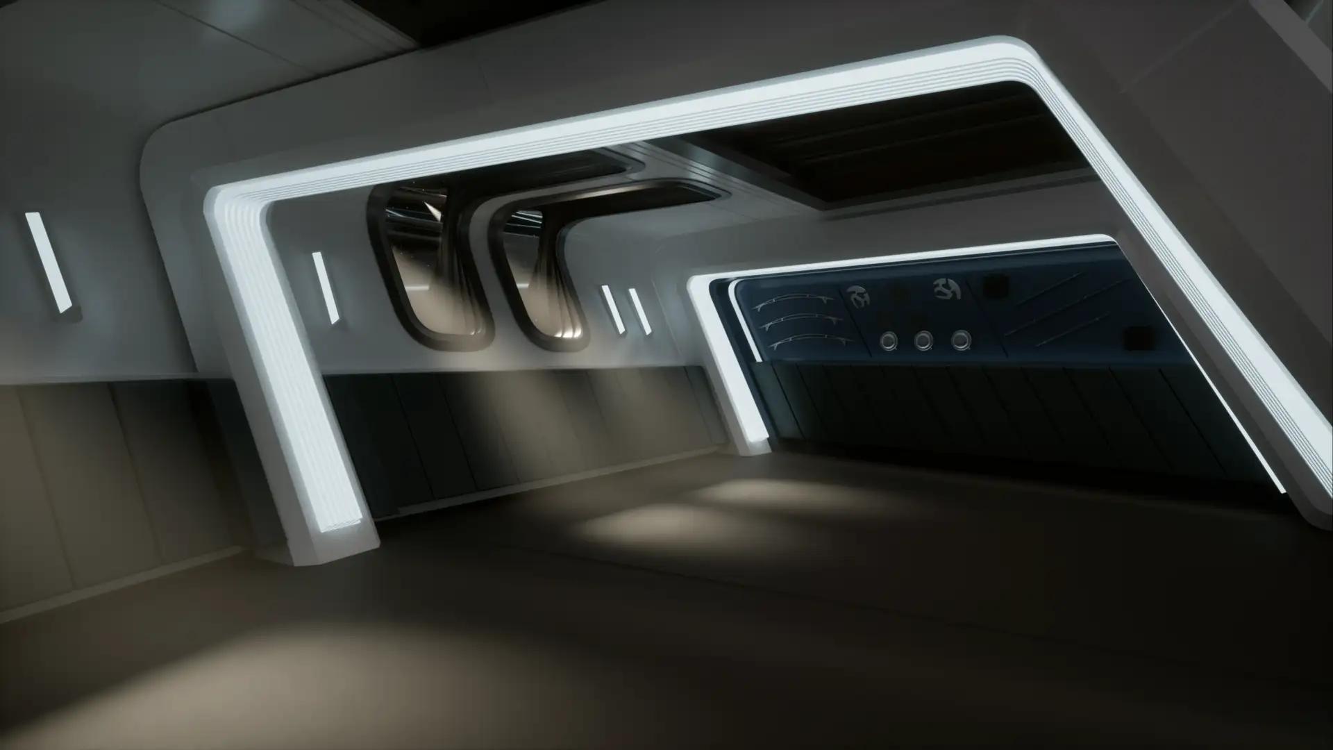 Over the course of building the virtual environment, teams of virtual production artists continually liaised with the series’ lighting designers, directors, set designers and directors of photography to align and adjust the developing virtual space to flow seamlessly with the “real” elements of the set. The team eventually developed 4 separate “baked” lighting scenarios: “baked” lighting refers to pre-programmed looks, such as “Meltdown” or “Red Alert”. By combining one of these “baked” lightmaps with animated 3D color correction, the production is able to create pulsing light throughout the room which conveys that energy is mixing within the warp core.