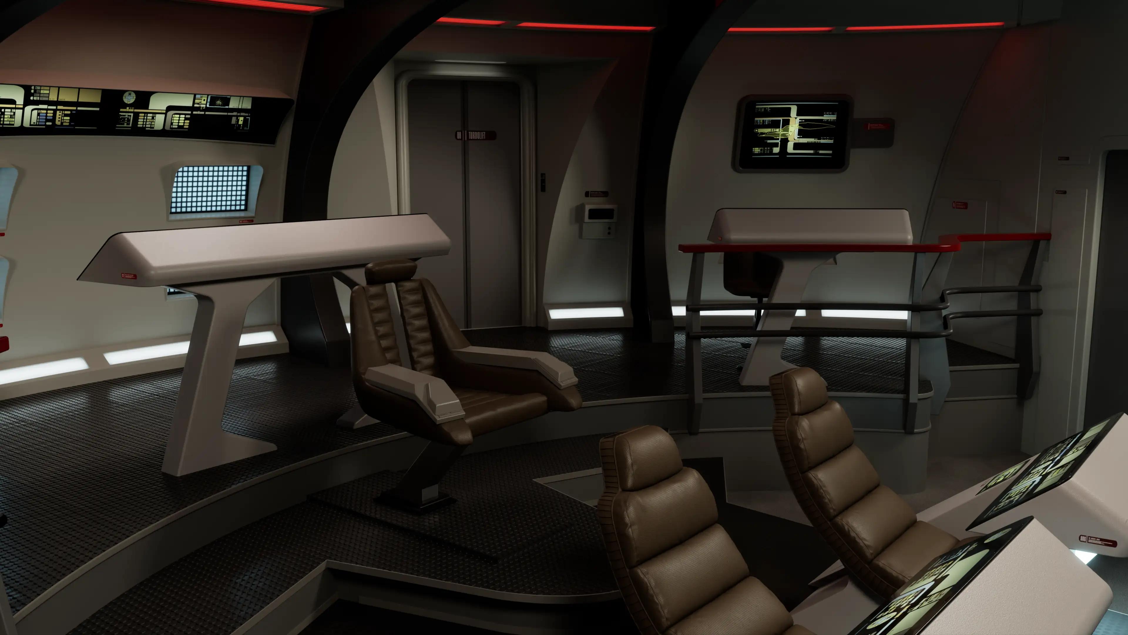 The battle bridge served as an auxiliary control center and tactical hub designed for emergency situations, particularly during combat situations, when the ship's saucer module was separated from the stardrive section. Located on deck 8, this control room remained with the ship's stardrive section when the saucer was separated. Equipped with redundant control systems and tactical displays, the battle bridge ensured that the starship could continue to function and defend itself in the face of threats, safeguarding the vessel's mission and crew in times of crisis.